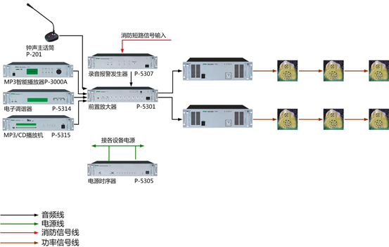 此係統支持定時定播放(打鈴、體操音樂、日常歌曲)、緊急廣播、分區控製、背景音樂。