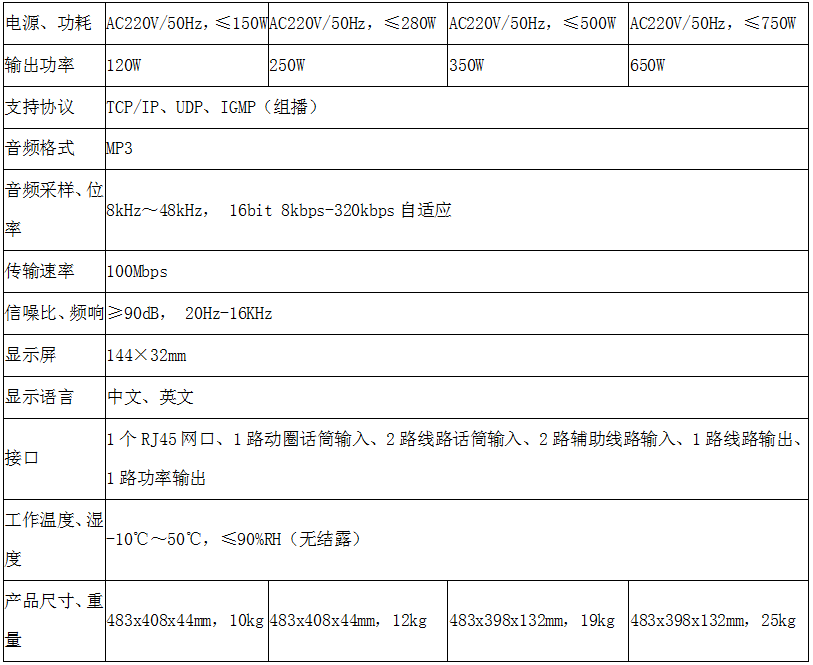 產品名稱:IP網絡廣播功放120W/250W/350W/650W