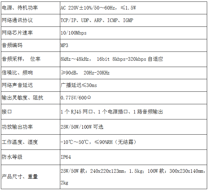 產品名稱:IP網絡廣播室外終端25W/50W/100W