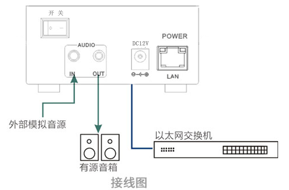 Ø 支持一路本地線路輸出,可外擴功放或者有源音箱。