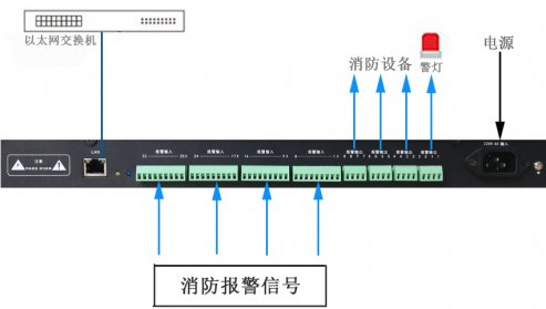Ø 32路報警輸入接口(開關量輸入),分別支持常開/常閉2種觸電方式,從消防中心接入信號。