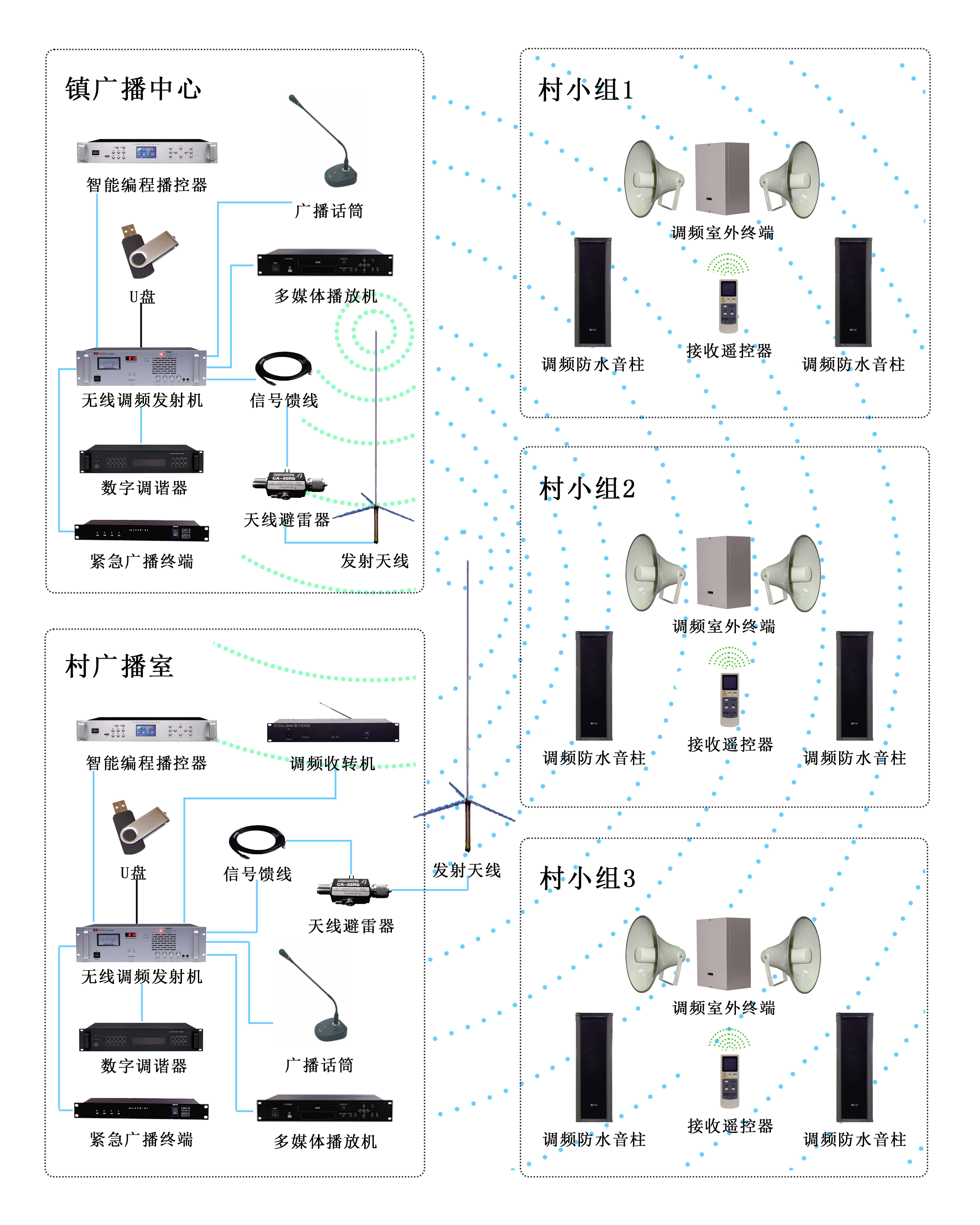 村村響農村無線調頻廣播係統拓撲圖