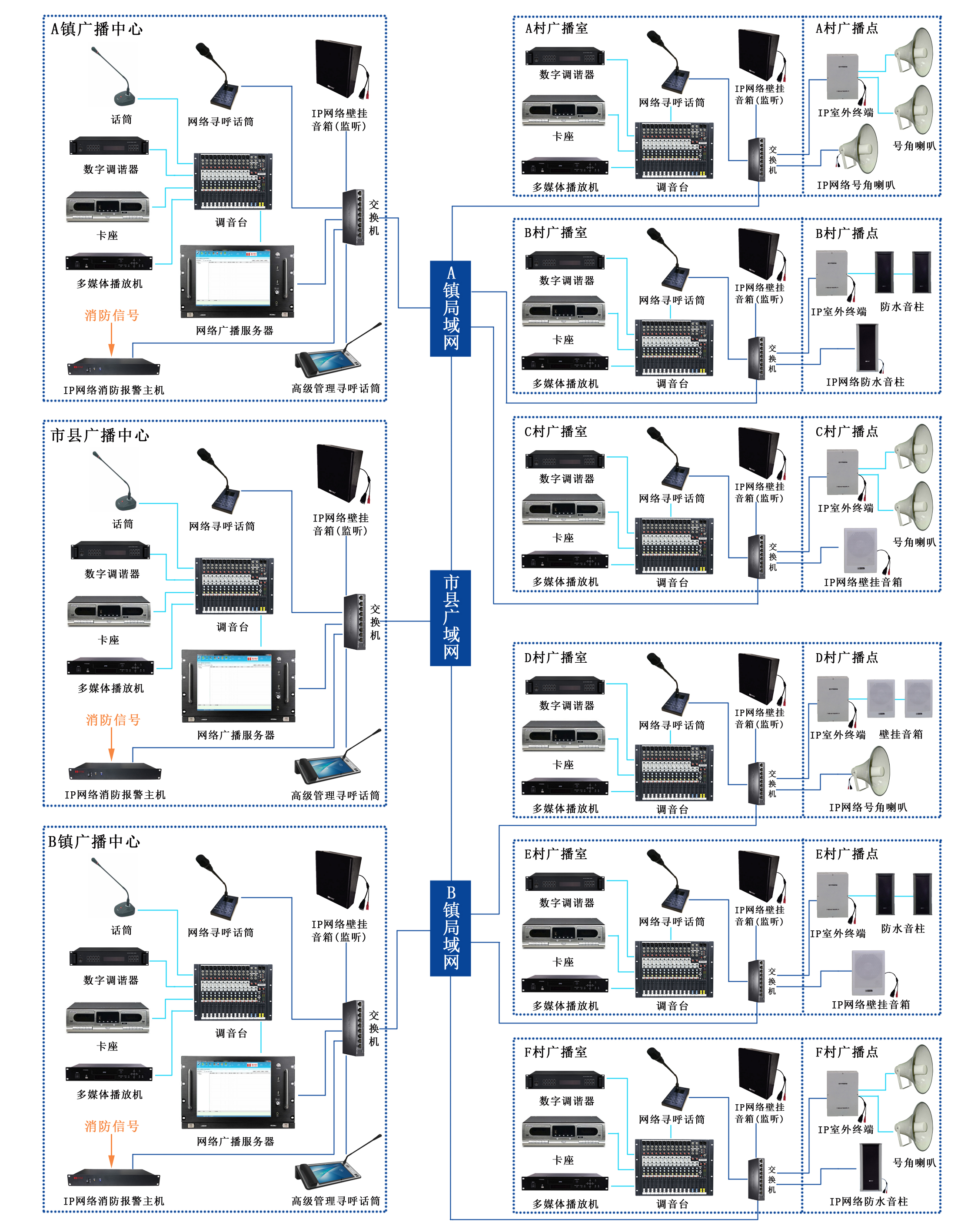 村村響農村IP網絡廣播係統拓撲圖
