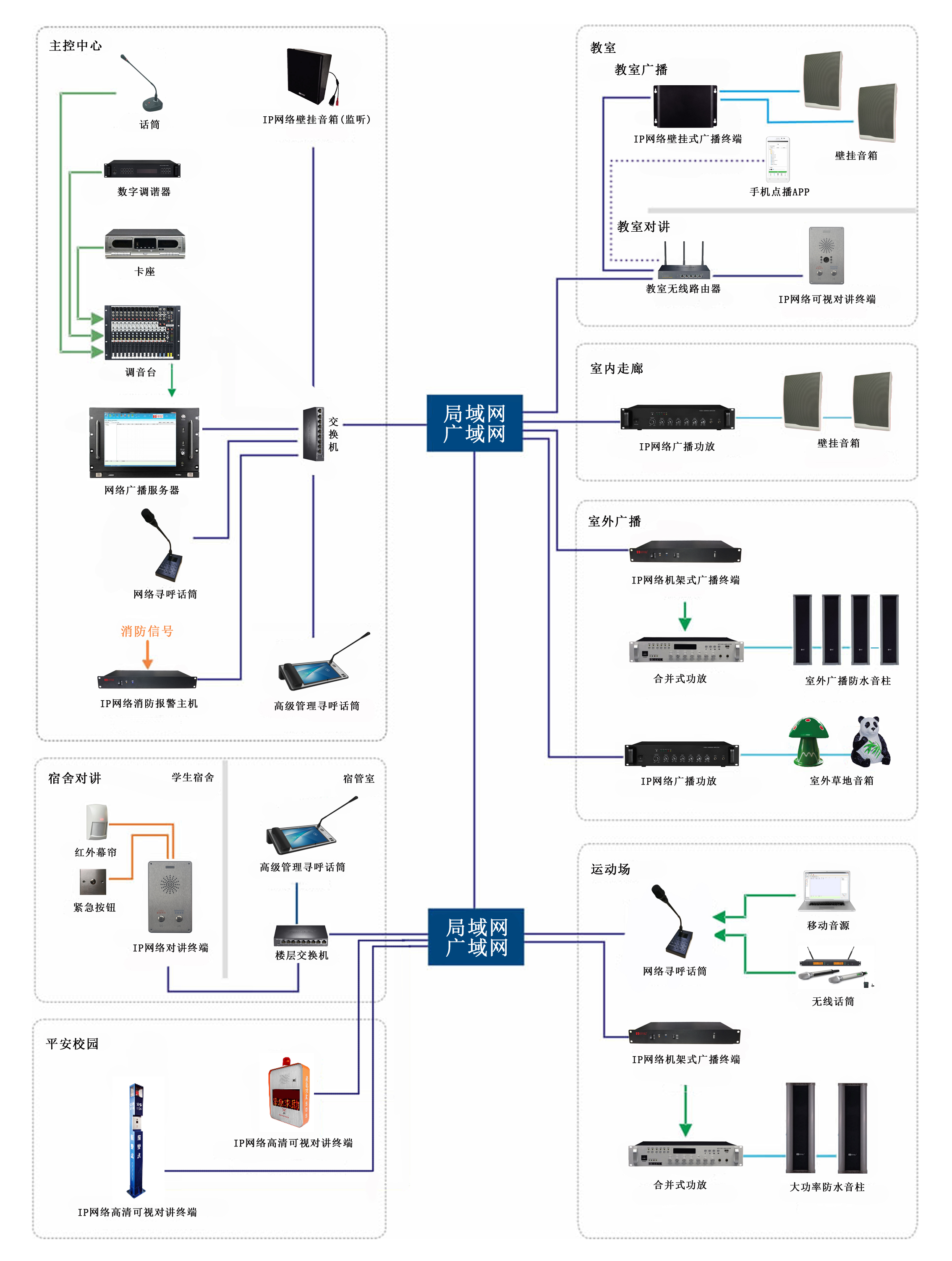 校園IP網絡廣播對講融合係統拓撲圖